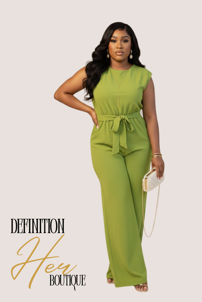 Elevate your fall wardrobe with the Serving Class Jumpsuit in apple green. This sophisticated piece features a versatile BK button-down design, allowing you to wear it reversed for a fresh look. The elastic waist ensures a flattering, comfortable fit, while convenient side pockets add practical elegance to your style. Perfect for effortless chic throughout the season.