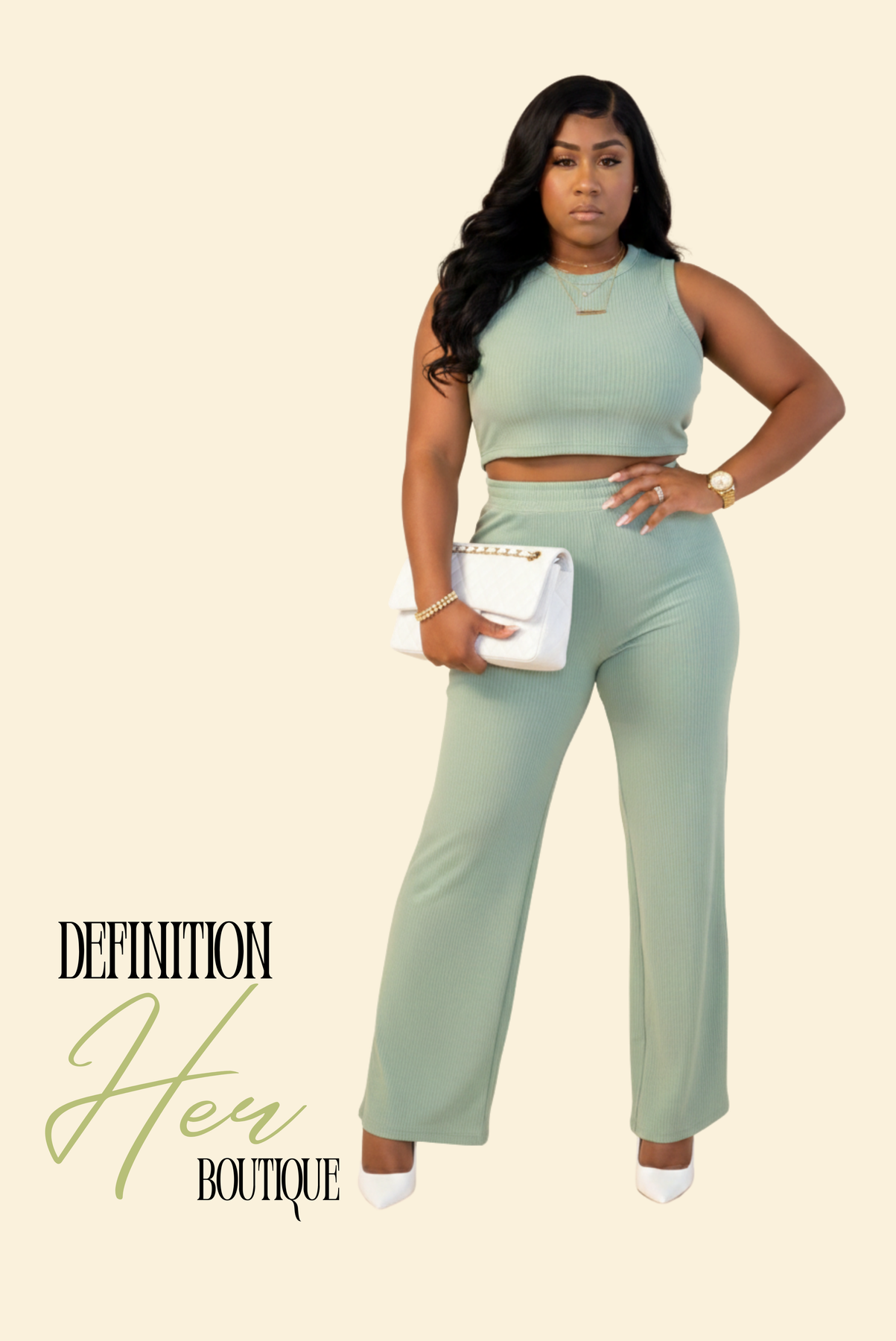 This two-piece features a sleeveless tank paired with high-waisted, wide-leg trousers that flow beautifully. The lightweight micro-pleated plissé fabric drapes like a dream and the best part? It’s wrinkle-resistant, so you can stay looking put together all day long without the extra work 👏🏾