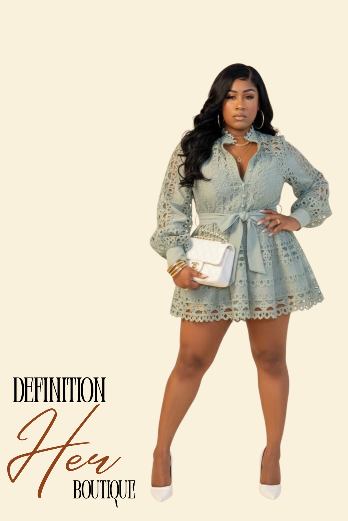 Indulge in luxury with our Pretty Girl in Lace & Pearls dress in the mesmerizing color Sage. The fully laced oversized flare dress is expertly embroidered with delicate pearls buttons, making it a high-quality and exclusive addition to your wardrobe. Waist tie &sage dress slip included. Part of our elite collection, this dress exudes sophistication and elegance.